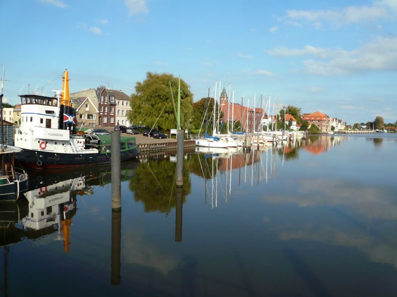 Der Glückstädter Binnenhafen mit historischem Schlepper Flensburg